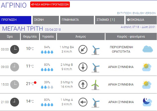 Ο καιρός στο Αγρίνιο σήμερα (Μ. Τρίτη, 03/04) – (Κείμενο-Φωτό-Ηχητικό)