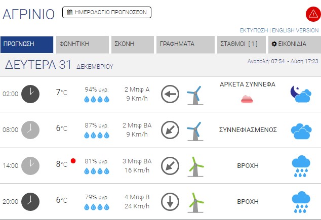 Ο καιρός στο Αγρίνιο σήμερα (Παραμονή Πρωτοχρονιάς, 31/12)