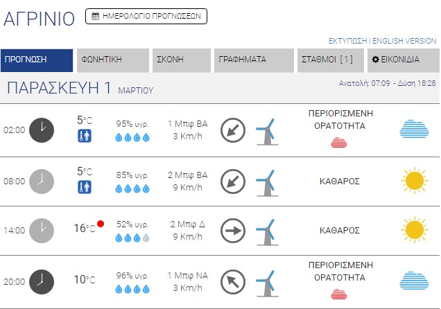 Ο καιρός στο Αγρίνιο σήμερα (Παρασκευή, 01/03)