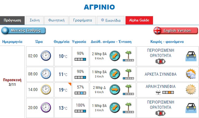 Ο καιρός στο Αγρίνιο σήμερα (Παρασκευή, 03/11)