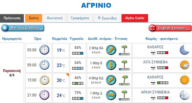 Ο καιρός στο Αγρίνιο σήμερα (Παρασκευή, 08/09)