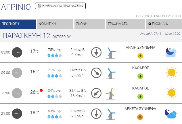 Ο καιρός στο Αγρίνιο σήμερα (Παρασκευή, 12/10) – (Κείμενο-Φωτό-Ηχητικό)