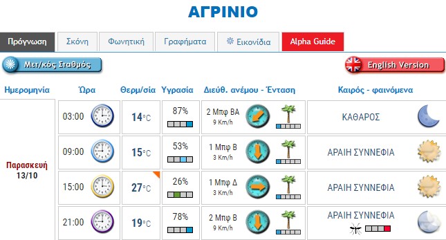 Ο καιρός στο Αγρίνιο σήμερα (Παρασκευή, 13/10)