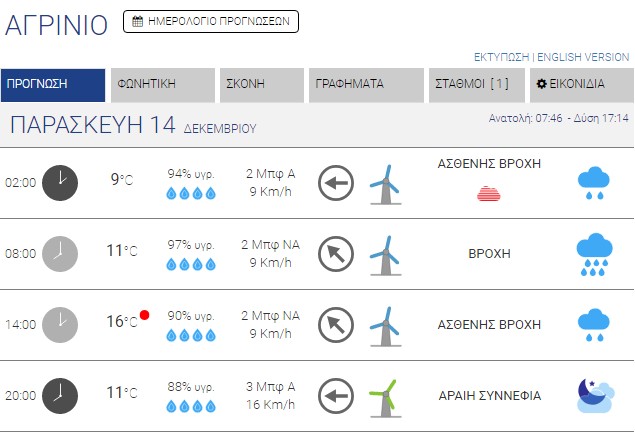 Ο καιρός στο Αγρίνιο σήμερα (Παρασκευή, 14/12) – (Κείμενο-Φωτό-Ηχητικό)