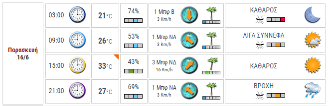 Ο καιρός στο Αγρίνιο σήμερα (Παρασκευή, 16/06)