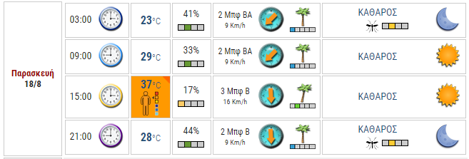 Ο καιρός στο Αγρίνιο σήμερα (Παρασκευή, 18/08)