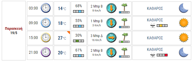 Ο καιρός στο Αγρίνιο σήμερα (Παρασκευή, 19/05)