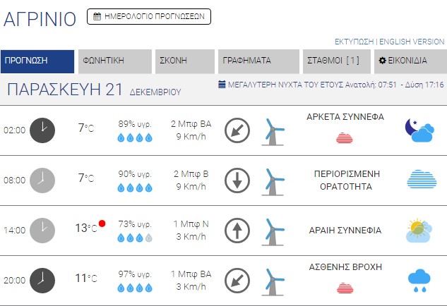 Ο καιρός στο Αγρίνιο σήμερα (Παρασκευή, 21/12) – (Κείμενο-Φωτό-Ηχητικό)
