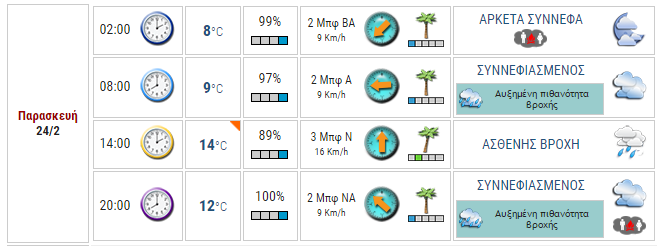 Ο καιρός στο Αγρίνιο σήμερα (Παρασκευή, 24/02)