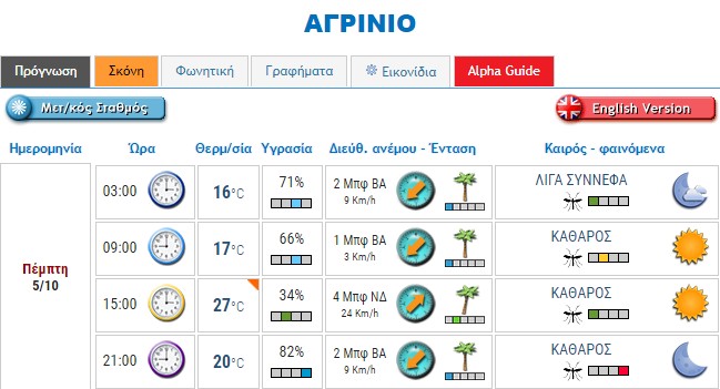Ο καιρός στο Αγρίνιο σήμερα (Πέμπτη, 05/10)