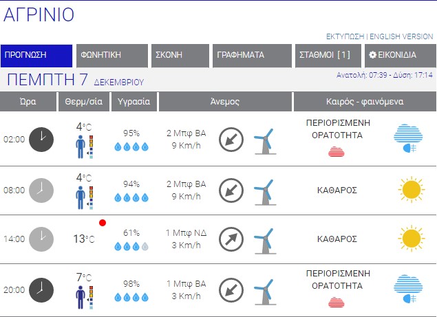 Ο καιρός στο Αγρίνιο σήμερα (Πέμπτη, 07/12) – (Κείμενο-Φωτό-Ηχητικό)