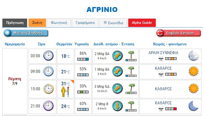 Ο καιρός στο Αγρίνιο σήμερα (Πέμπτη, 07/09)