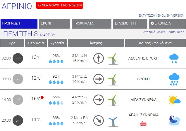 Ο καιρός στο Αγρίνιο σήμερα (Πέμπτη, 08/03) – (Κείμενο-Φωτό-Ηχητικό)
