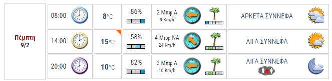 Ο καιρός στο Αγρίνιο σήμερα (Πέμπτη, 09/02)