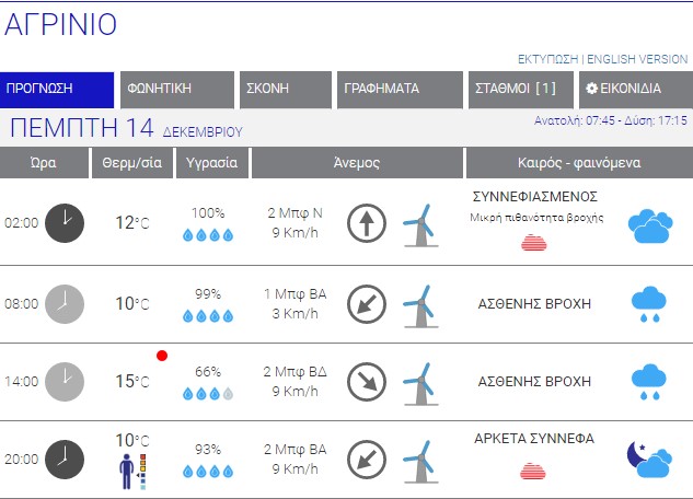 Ο καιρός στο Αγρίνιο σήμερα (Πέμπτη, 14/12) – (Κείμενο-Φωτό-Ηχητικό)