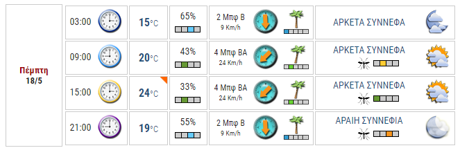 Ο καιρός στο Αγρίνιο σήμερα (Πέμπτη, 18/05)