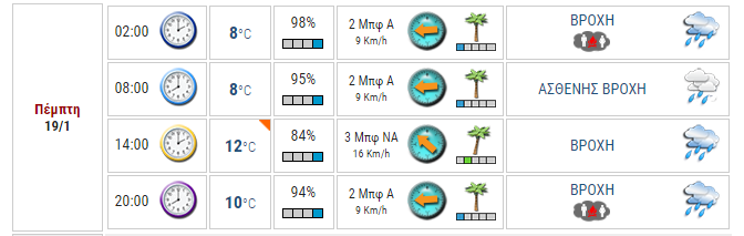 Ο καιρός στο Αγρίνιο σήμερα (Πέμπτη, 19/01)