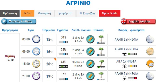Ο καιρός στο Αγρίνιο σήμερα (Πέμπτη, 19/10)