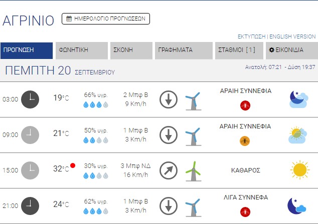 Ο καιρός στο Αγρίνιο σήμερα (Πέμπτη, 20/09) – (Κείμενο-Φωτό-Ηχητικό)
