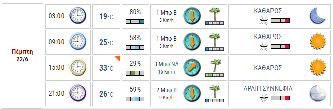 Ο καιρός στο Αγρίνιο σήμερα (Πέμπτη, 22/06)