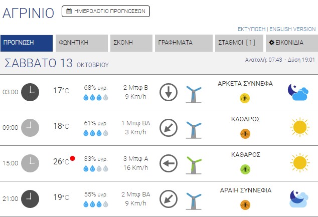 Ο καιρός στο Αγρίνιο σήμερα (Σάββατο, 13/10) – (Κείμενο-Φωτό-Ηχητικό)