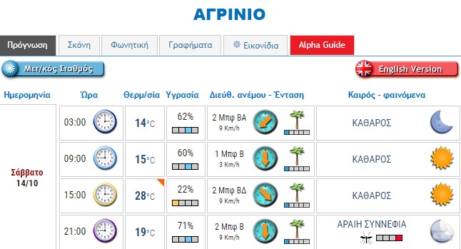 Ο καιρός στο Αγρίνιο σήμερα (Σάββατο, 14/10)