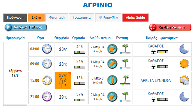 Ο καιρός στο Αγρίνιο σήμερα (Σάββατο, 19/08)