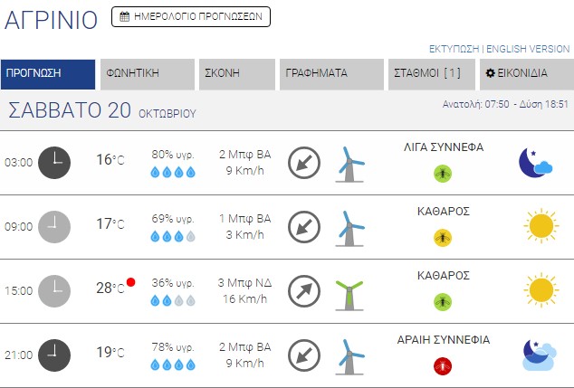 Ο καιρός στο Αγρίνιο σήμερα (Σάββατο, 20/10) – (Κείμενο-Φωτό-Ηχητικό)