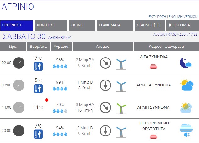 Ο καιρός στο Αγρίνιο σήμερα (Σάββατο, 30/12) – (Κείμενο-Φωτό-Ηχητικό)