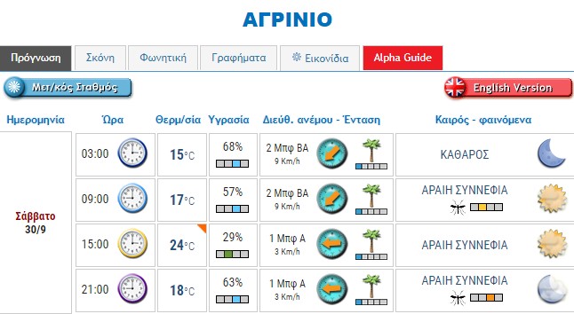 Ο καιρός στο Αγρίνιο σήμερα (Σάββατο, 30/09)