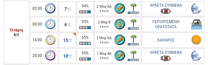 Ο καιρός στο Αγρίνιο σήμερα (Τετάρτη, 08/02)