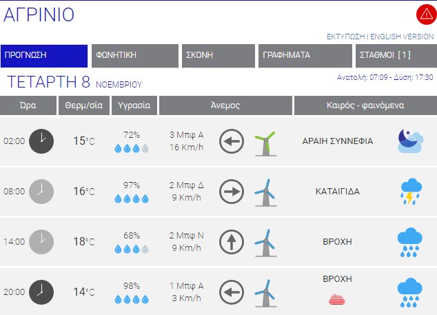 Ο καιρός στο Αγρίνιο σήμερα (Τετάρτη, 08/11) – (Κείμενο-Φωτό-Ηχητικό)
