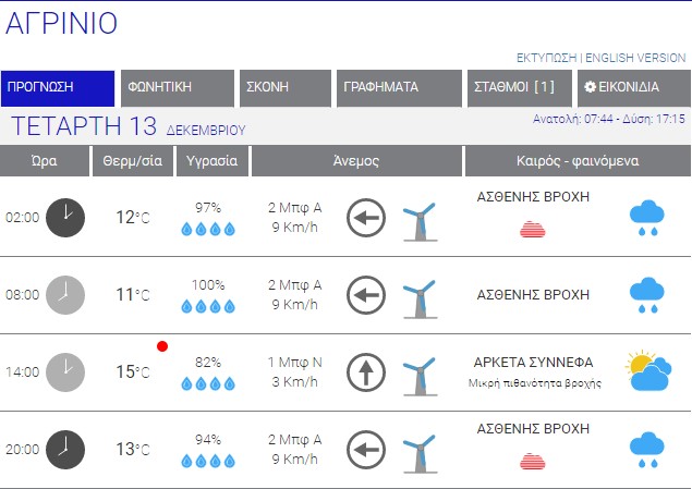 Ο καιρός στο Αγρίνιο σήμερα (Τετάρτη, 13/12) – (Κείμενο-Φωτό-Ηχητικό)