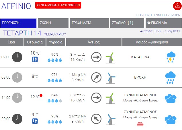 Ο καιρός στο Αγρίνιο σήμερα (Τετάρτη, 14/02)