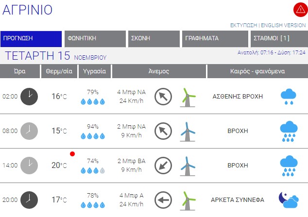 Ο καιρός στο Αγρίνιο σήμερα (Τετάρτη, 15/11) – (Κείμενο-Φωτό-Ηχητικό)