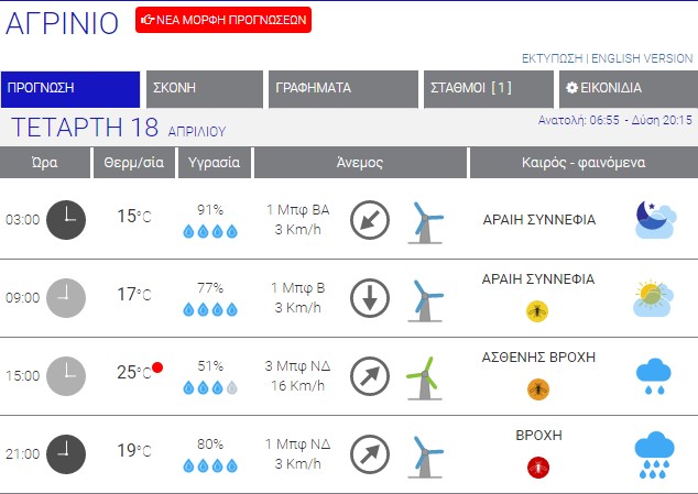 Ο καιρός στο Αγρίνιο σήμερα (Τετάρτη, 18/04) – (Κείμενο-Φωτό-Ηχητικό)