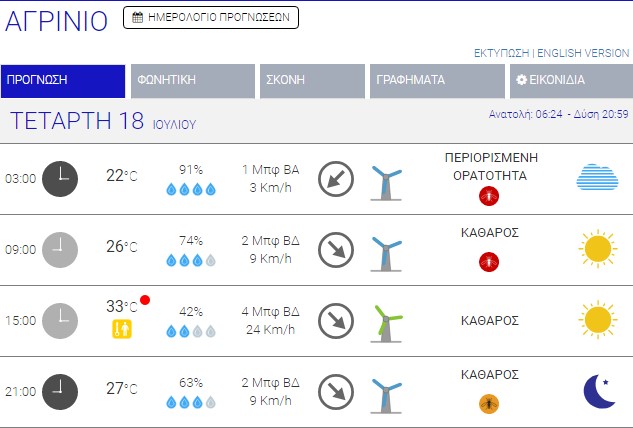 Ο καιρός στο Αγρίνιο σήμερα (Τετάρτη, 18/07) – (Κείμενο-Φωτό-Ηχητικό)