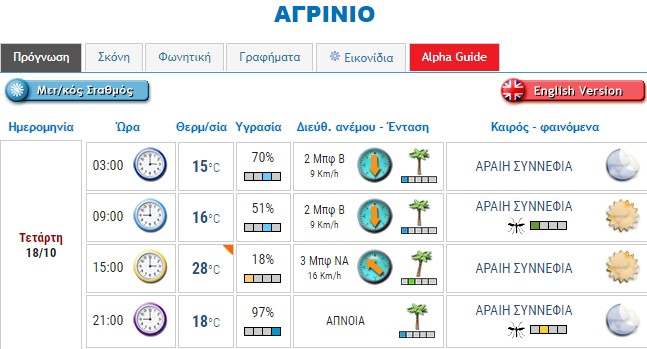 Ο καιρός στο Αγρίνιο σήμερα (Τετάρτη, 18/10)
