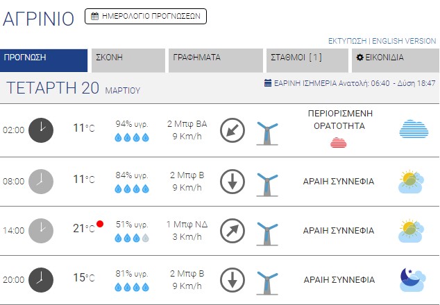 Ο καιρός στο Αγρίνιο σήμερα (Τετάρτη, 20/03) – (Κείμενο-Φωτό)