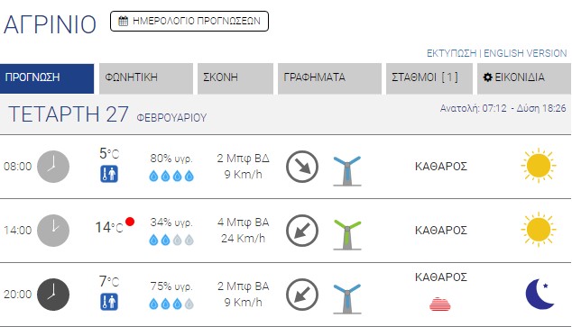 Ο καιρός στο Αγρίνιο σήμερα (Τετάρτη, 27/02) – (Κείμενο-Φωτό-Ηχητικό)