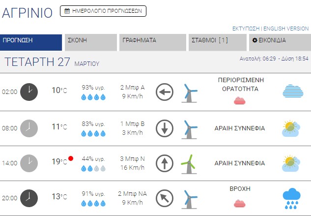Ο καιρός στο Αγρίνιο σήμερα (Τετάρτη, 27/03) – (Κείμενο-Φωτό)