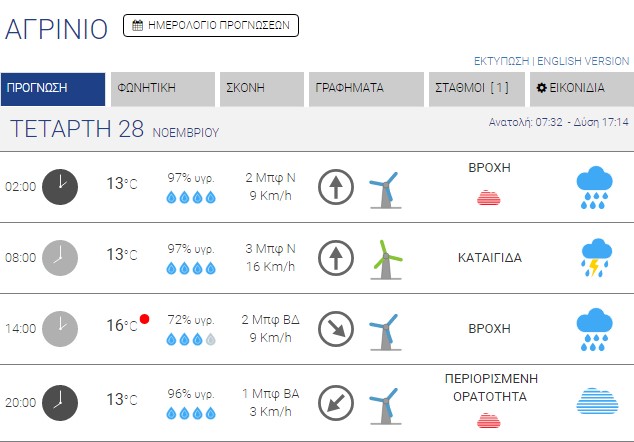 Ο καιρός στο Αγρίνιο σήμερα (Τετάρτη, 28/11) – (Κείμενο-Φωτό-Ηχητικό)