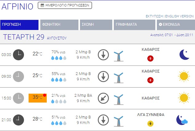 Ο καιρός στο Αγρίνιο σήμερα (Τετάρτη, 29/08) – (Κείμενο-Φωτό-Ηχητικό)