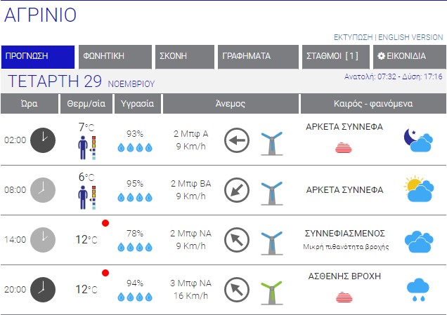 Ο καιρός στο Αγρίνιο σήμερα (Τετάρτη, 29/11) – (Κείμενο-Φωτό-Ηχητικό)