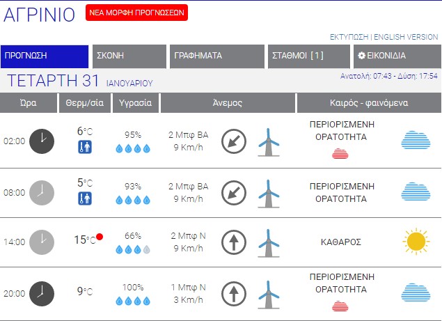 Ο καιρός στο Αγρίνιο σήμερα (Τετάρτη, 31/01) – (Κείμενο-Φωτό-Ηχητικό)