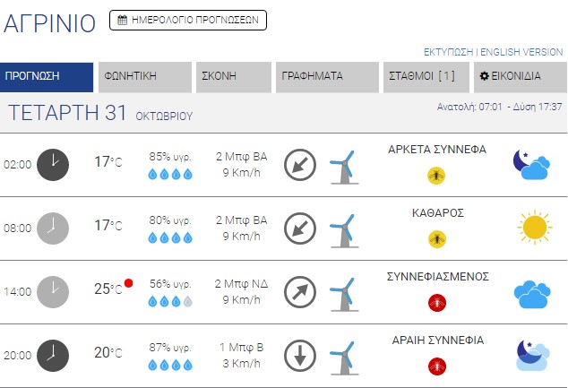 Ο καιρός στο Αγρίνιο σήμερα (Τετάρτη, 31/10) – (Κείμενο-Φωτό-Ηχητικό)