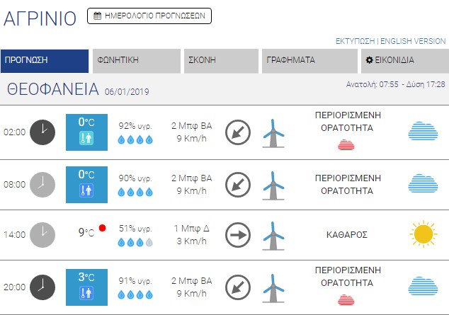 Ο καιρός στο Αγρίνιο σήμερα (Θεοφάνεια, 06/01)