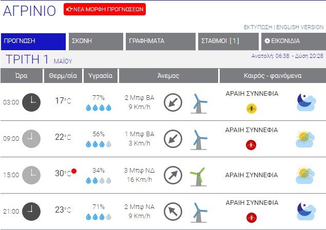 Ο καιρός στο Αγρίνιο σήμερα (Τρίτη, 01/05) – (Κείμενο-Φωτό-Ηχητικό)