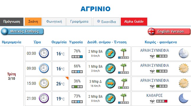 Ο καιρός στο Αγρίνιο σήμερα (Τρίτη, 03/10)