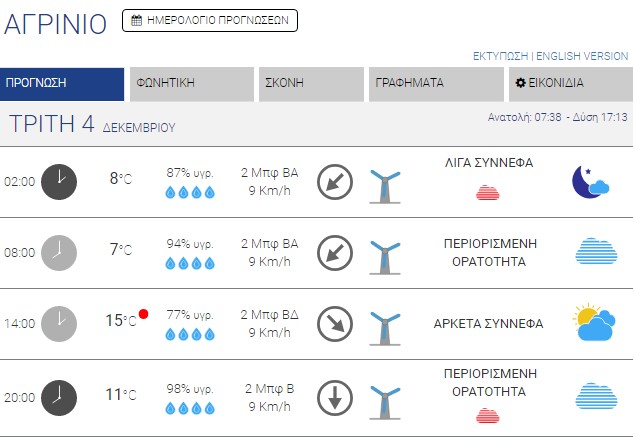 Ο καιρός στο Αγρίνιο σήμερα (Τρίτη, 04/12) – (Κείμενο-Φωτό-Ηχητικό)